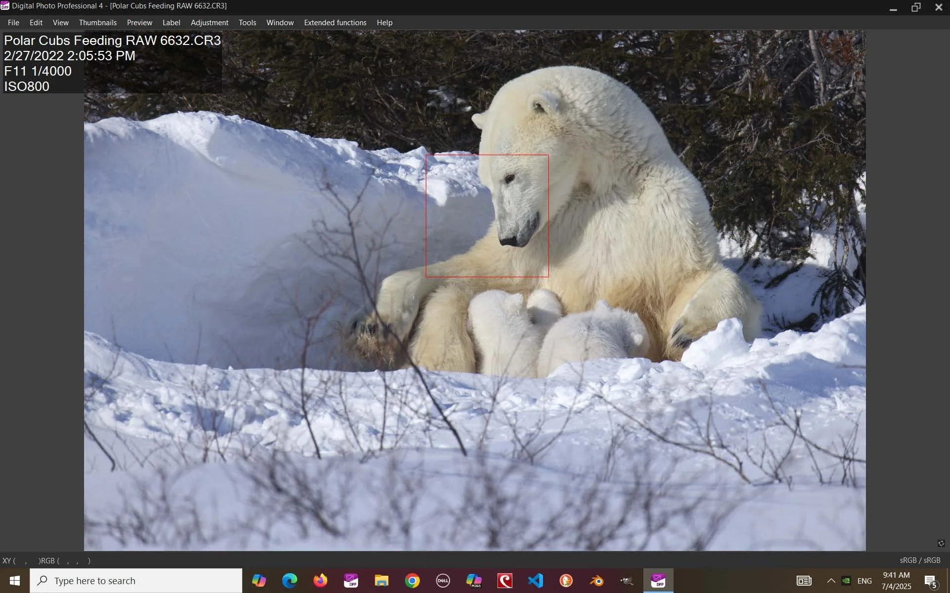 In my image “Polar Cubs Feeding,” the electronic shutter captured rapid movement, and DPP’s tools balanced the snow’s brightness for a sharp, vibrant final shot. The ability to verify focus points on the mother’s face during editing ensured the image’s clarity.